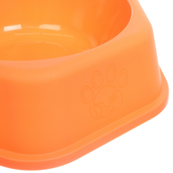 Яркая миска для домашних животных подойдет для собак, кошек или других питомцев. Миска устойчива и не скользит по полу. Подойдет для сухих и влажных кормов, для воды. Выполнена из высококачественного пластика.