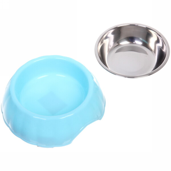 Миска пластиковая с металлической чашкой "Классик" 16*5см цвет голубой