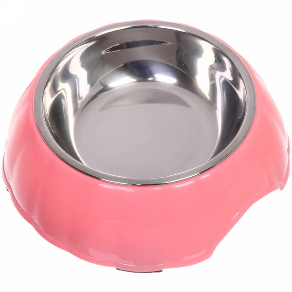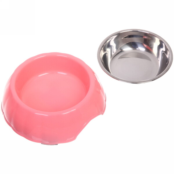 Миска пластиковая с металлической чашкой "Классик" 16*5см цвет розовый