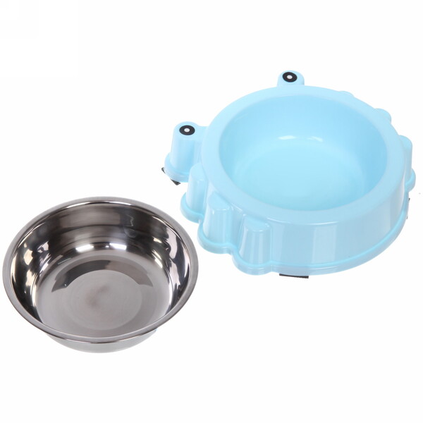 Миска пластиковая с металлической чашкой "Колор-Лягушка" 20*5см цвет нежно-голубой/250мл