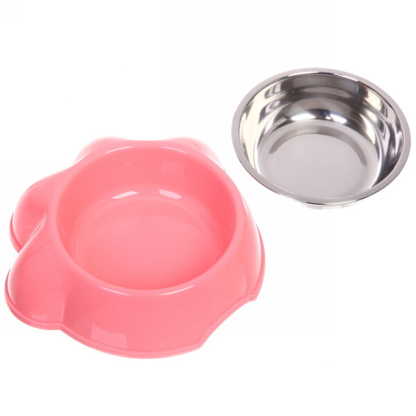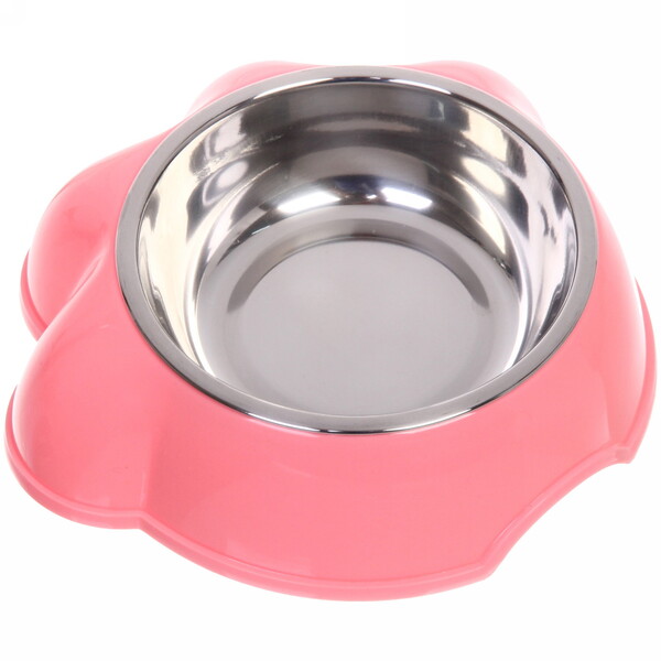 Миска пластиковая с металлической чашкой "Лапка" 16*4,6см цвет розовый