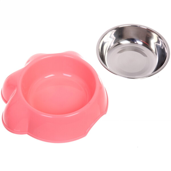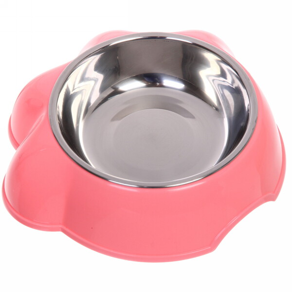 Миска пластиковая с металлической чашкой "Лапка" 21*6,5см цвет розовый / 350 и 450мл