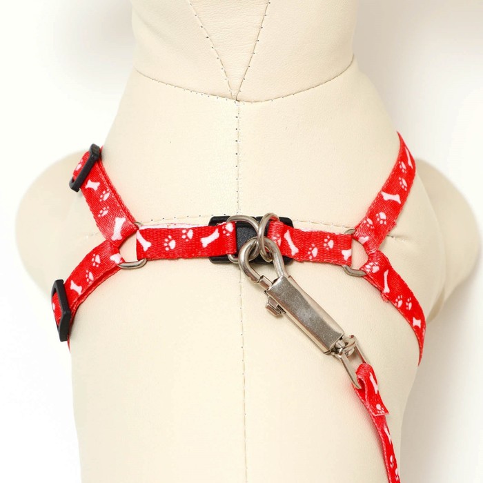 Комплект «Классика», капрон, поводок 120×1 см, ОГ 21-35 см, красный
