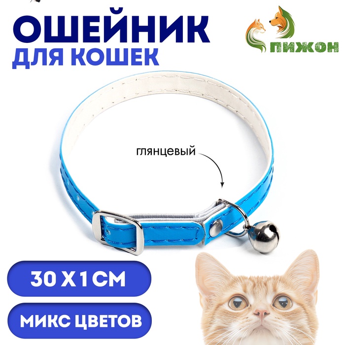 Ошейник глянцевый на резинке, с бубенчиком, 30×1 см, микс цветов
