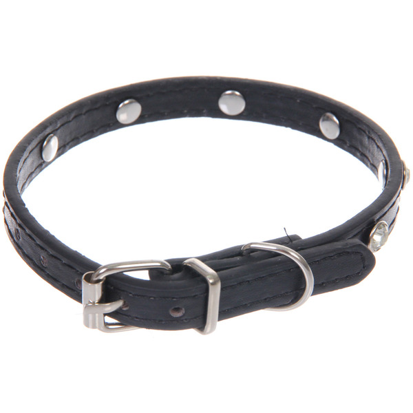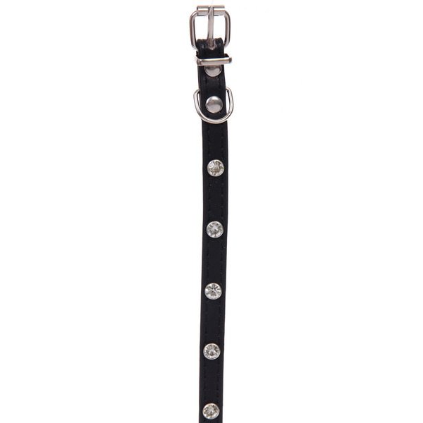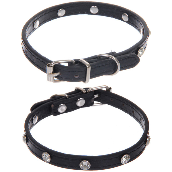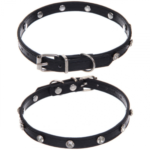 Стильный, модный ошейник со стразами из искусственной кожи и с прочным металлическим креплением для поводка для кошек и собак. Ошейник сделан с  учётом анатомических особенностей разных пород, ошейник будет служить долго и не доставит неудобства питомцу и его владельцу.Такой ошейник сделает вашего питомца более привлекательным на прогулке и дома. Ошейник отлично подойдёт для повседневного использования, для выставок, для прогулок, для ноовогодней вечеринки и празднования ня рождения.