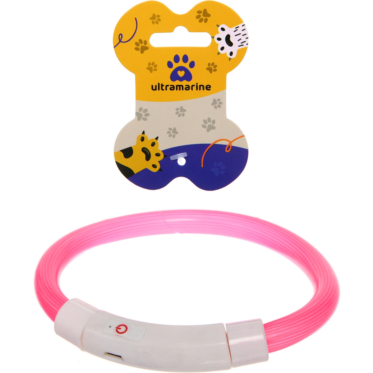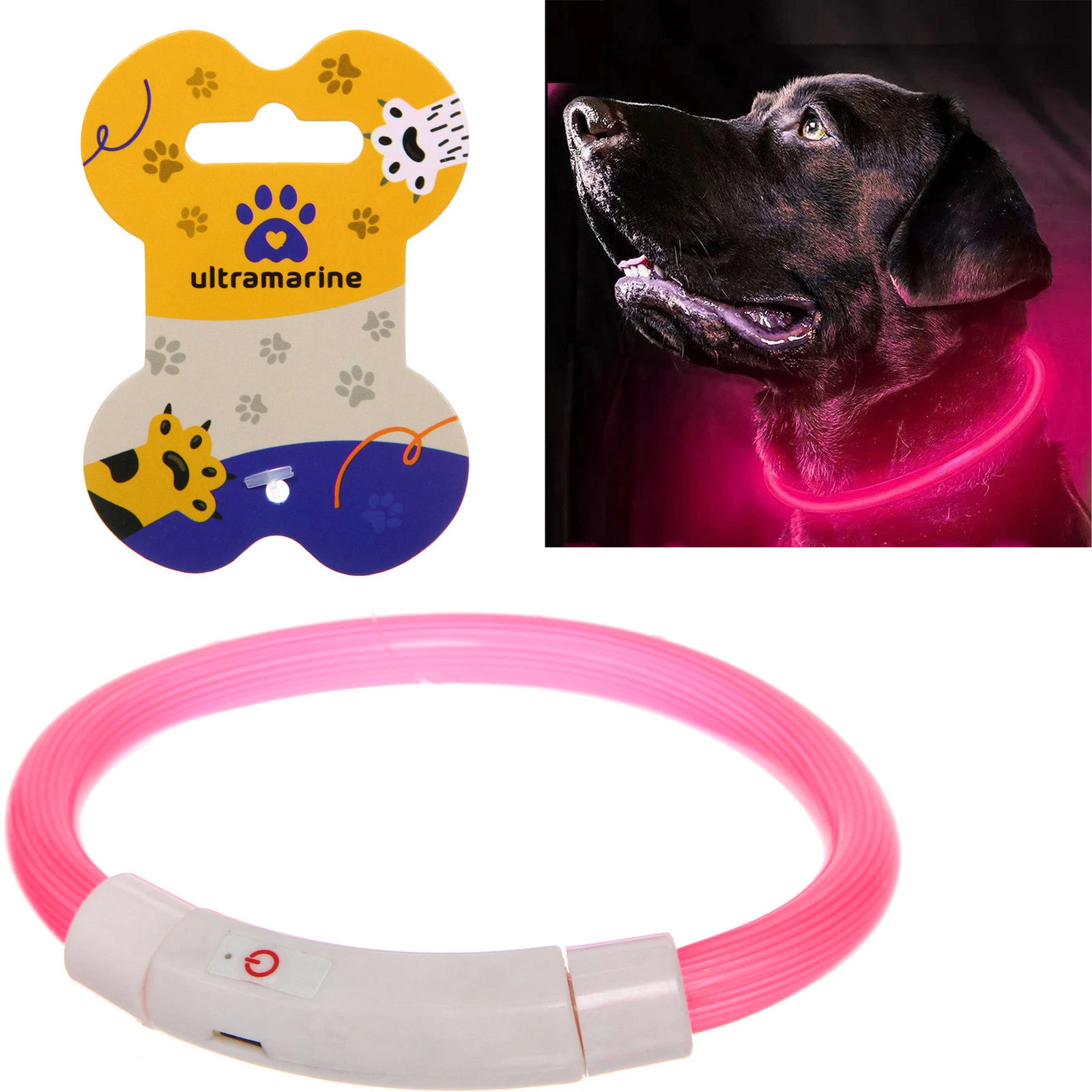 Ошейник неоновый для собак малых пород "Защита Бро", цвет розовый, зарядка от USB, шнур в комплекте, размер S - d 35см (пакет с подвесом)