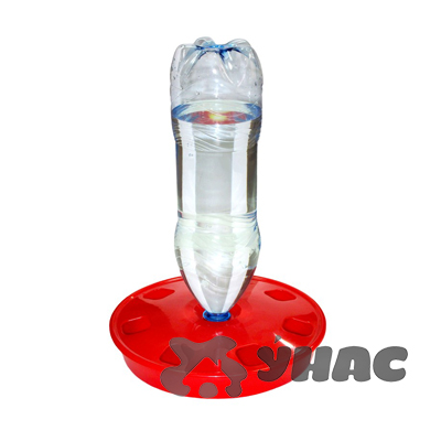 Поилка под бутылку вакуумного типа диаметром основания 260 мм. На поилку нанесена специальная резьба для пластиковой бутылки. При этом можно использовать любой объем от 0,5 до 3 л.