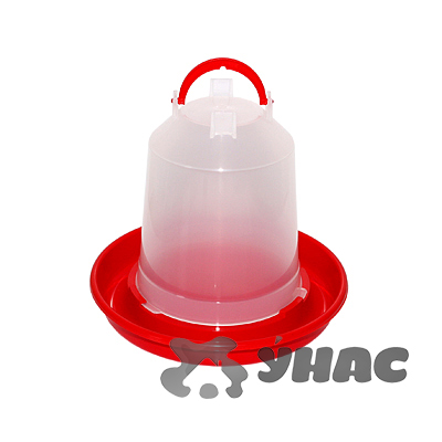 Практичная подвесная поилка, используется при выращивании практически любых видов домашней птицы. Изготовлена поилка из гигиеничного, высококачественного пластика, безопасного и при этом очень прочного. Питьевая вода заливается в емкость, затем сверху крепится тарелка после чего поилка переворачивается. В таком виде ее можно поставить на пол или при желании подвесить за предусмотренное на емкости кольцо.