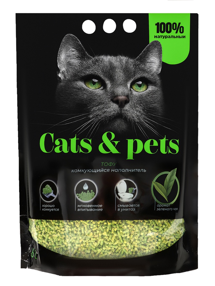 Наполнитель комкующийся Cats&pets тофу, зеленый чай, 6 л