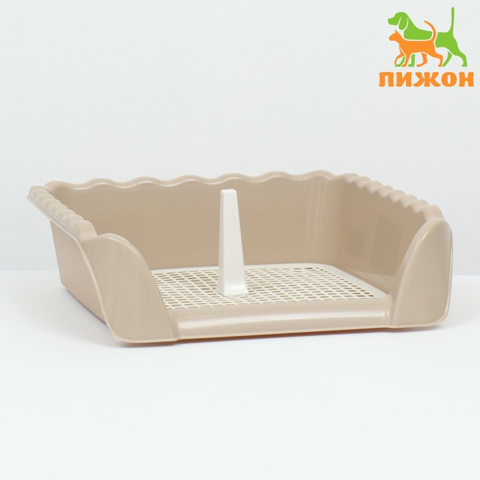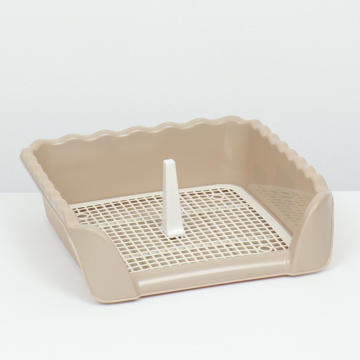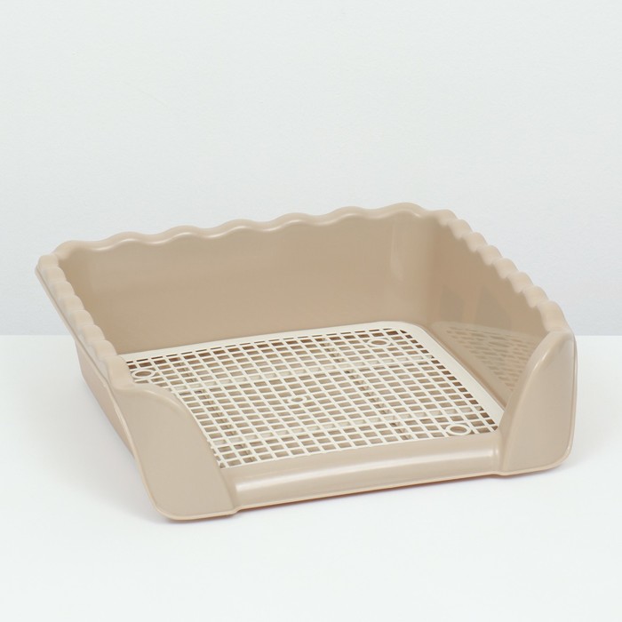 Туалет для собак с высокими бортами и съемной сеткой 38х36х12 см, бежевый