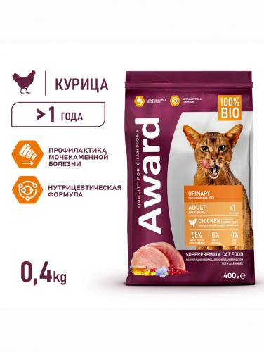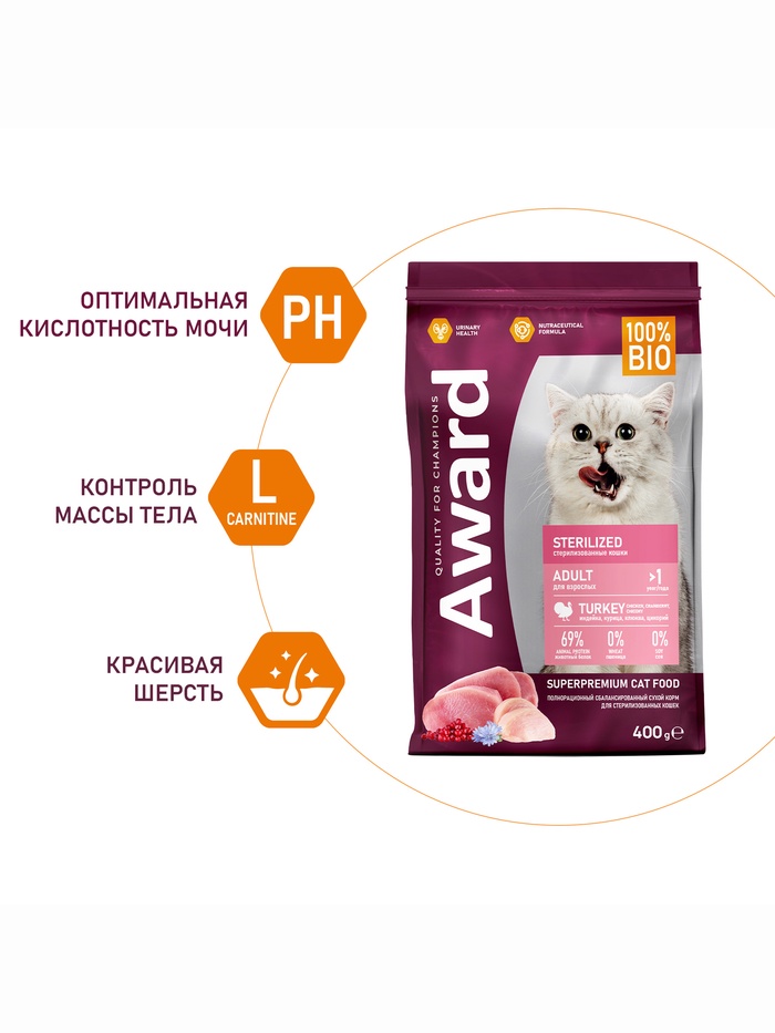 Сухой корм AWARD Sterilized для вз-х стерил. кошек с инд/кур. (клюква и цикорий) 400 г