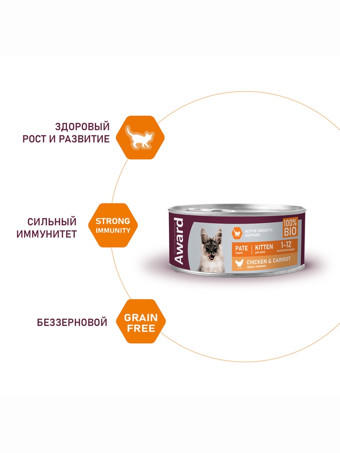 Влажный корм AWARD для котят, паштет из курицы с морковью 100 г