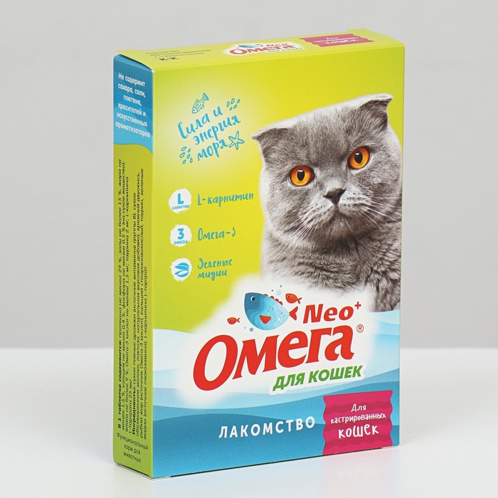 Омега Neo+ — вкусное и полезное лакомство для поощрения, баловства и поддержания здоровья кастрированных кошек
