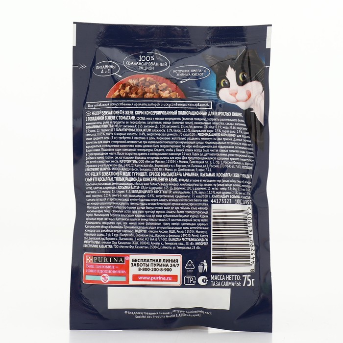Чтобы Ваш питомец получил богатейшую палитру ощущений вкуса и аромата, эксперты Purina создали влажный корм для взрослых кошек Felix «Sensations». Влажные корма для кошек Felix, созданные из высококачественных ингредиентов с заботливо приготовленными нежными кусочками в аппетитном желе подарят Вашему любимцу потрясающие ощущения и оптимальную комбинацию питательных веществ для активной и здоровой жизни.