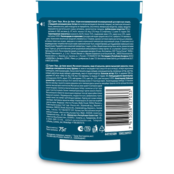 •Влажные корма Гурмэ® не содержат искусственных ароматизаторов и консервантов.