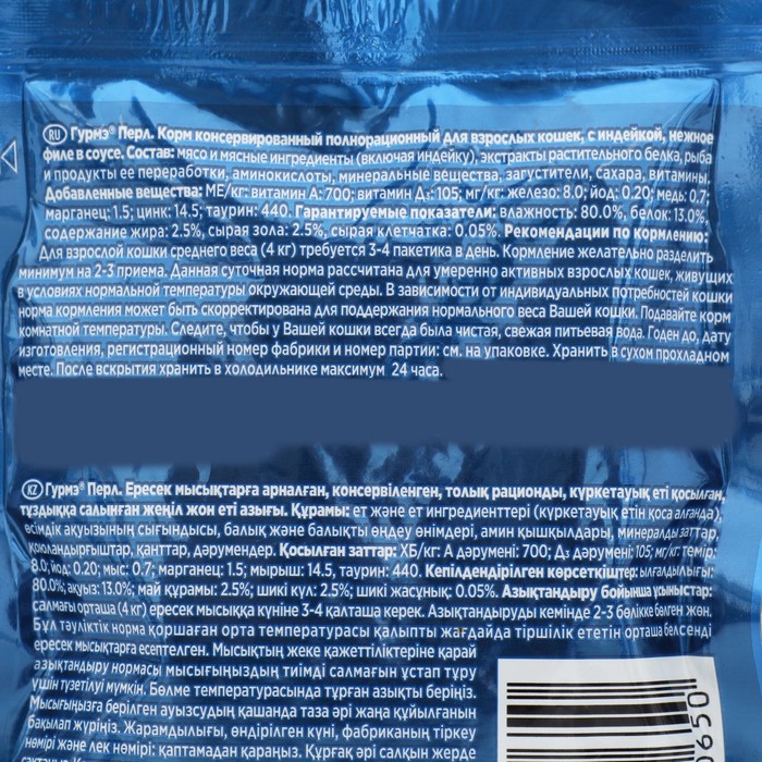 •Влажные корма Гурмэ® не содержат искусственных ароматизаторов и консервантов.