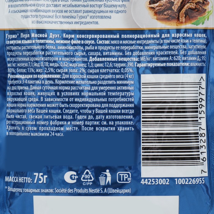 •Влажные корма Гурмэ® не содержат искусственных ароматизаторов и консервантов.