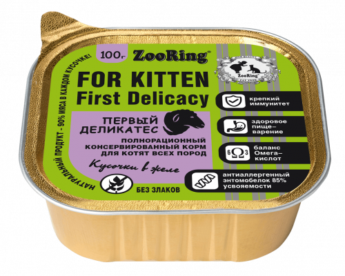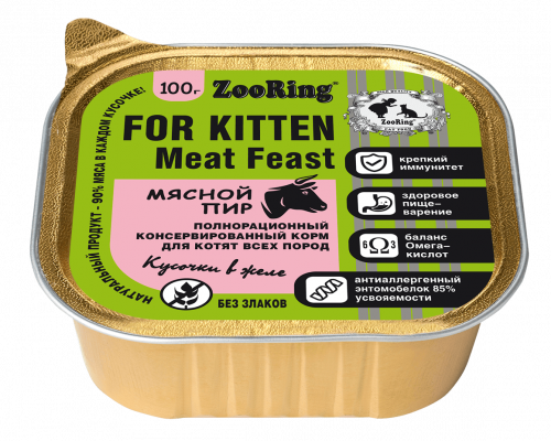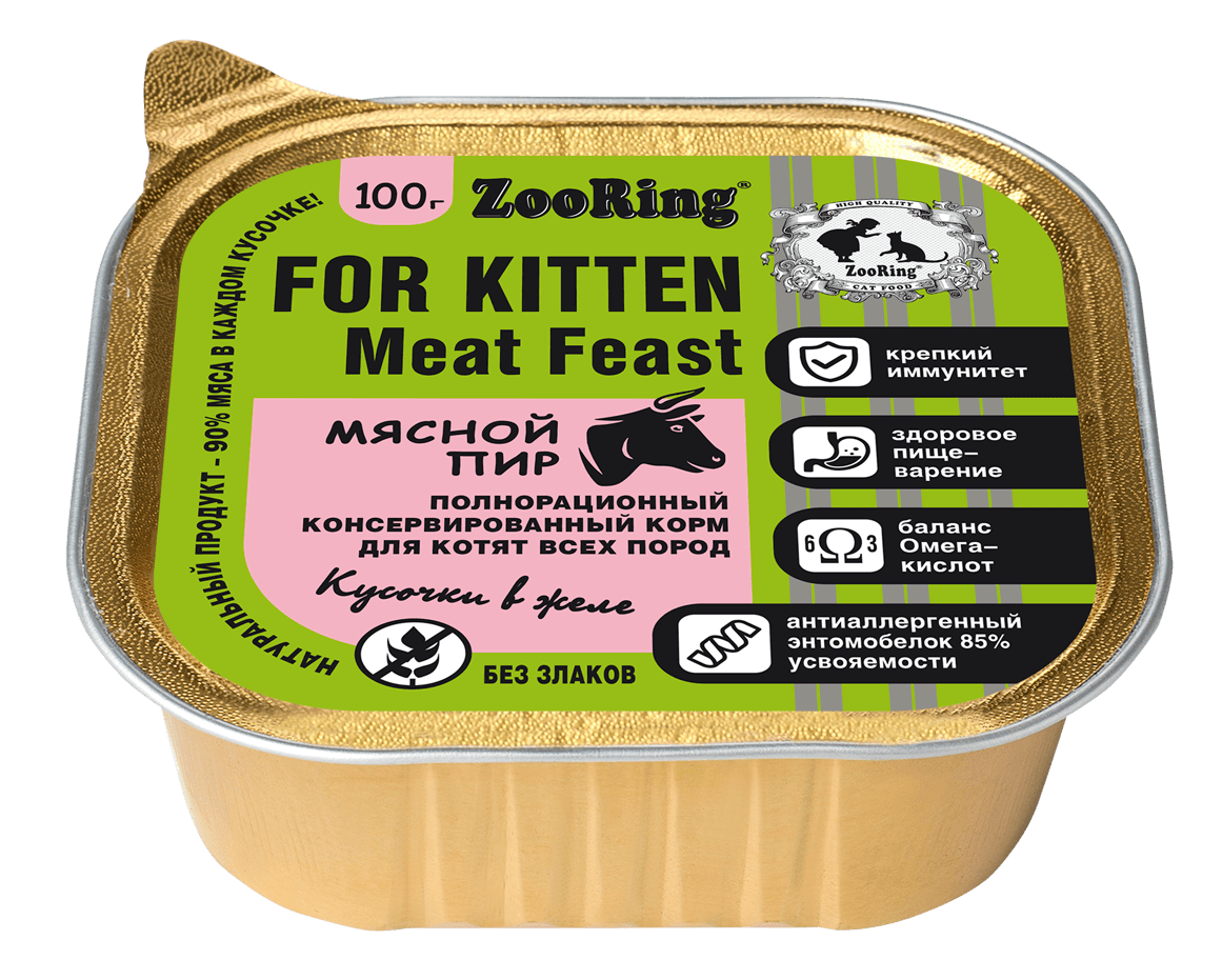 ZOORING Консервы для котят кусочки в желе с львинкой Мясной пир, 100 г