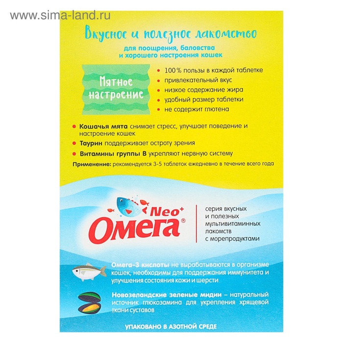 Лакомство Омега Neo+ «Мятное настроение» для кошек, с кошачьей мятой, 90 табл