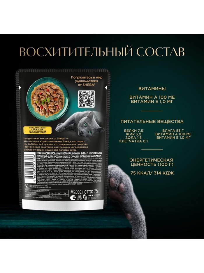 Влажный корм Sheba для кошек, пауч, курица/паприка, 75 г