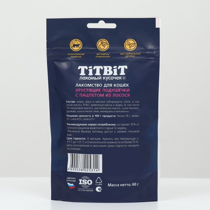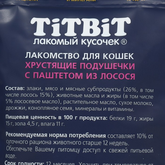 Хрустящие подушечки TiTBiT для кошек с паштетом из лосося 60 г