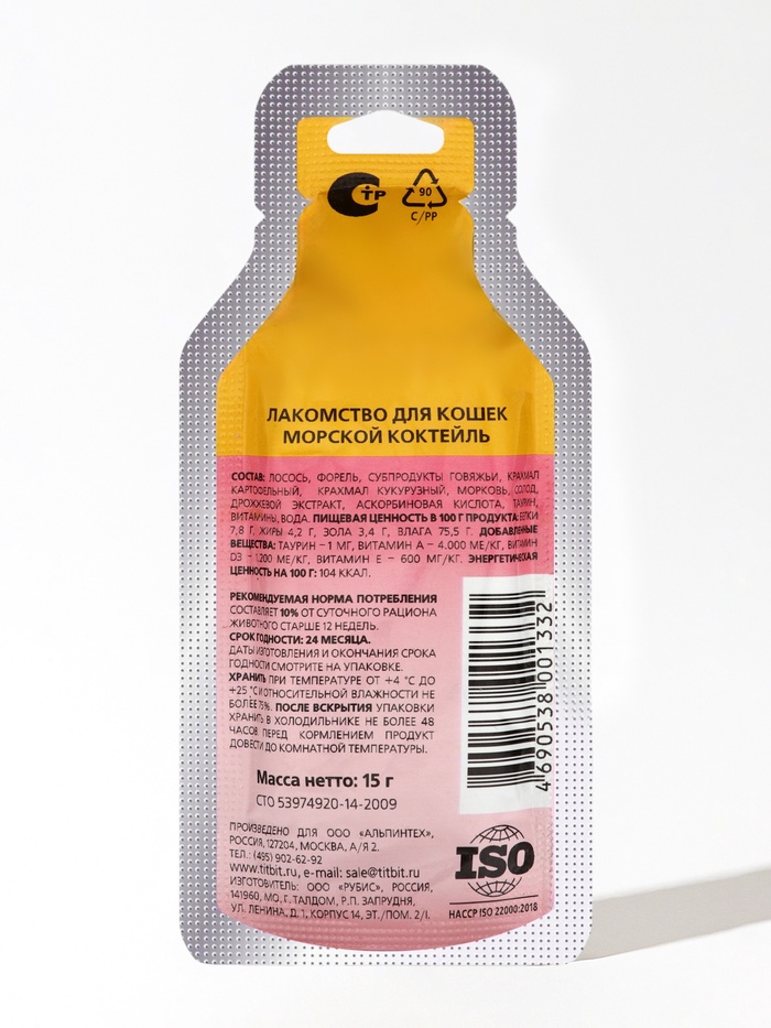 Нежное угощение с ароматом моря! Лакомство-мусс Titbit с морепродуктами — это вкусное поощрение для вашей кошки. Мягкая текстура и насыщенный вкус делают его желанным дополнением к рациону.