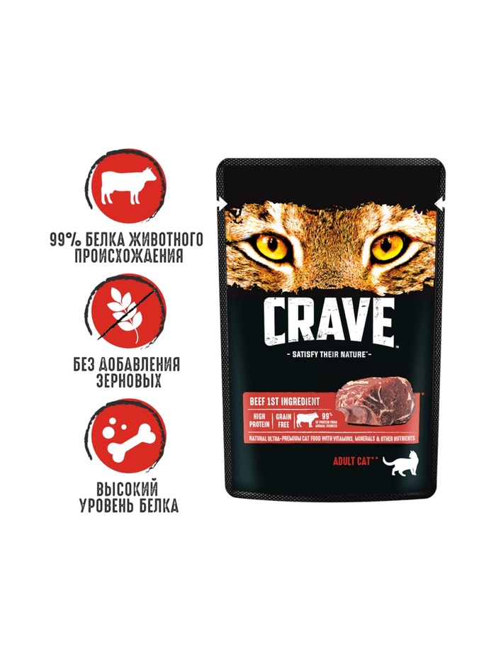 Влажный корм Crave для кошек, пауч говядина в желе 70 г