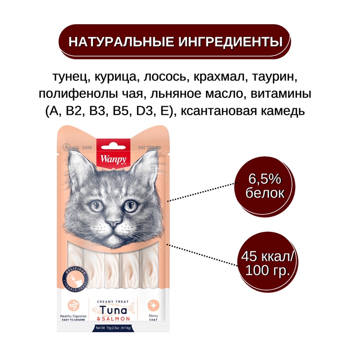 * Удобство использования: Фасовка 70 г в герметичной тубе сохраняет свежесть продукта. Лакомство легко дозировать и хранить после вскрытия.