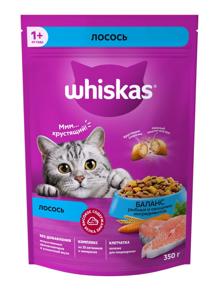 Сухой корм Whiskas для кошек, лосось, подушечки, 350 г