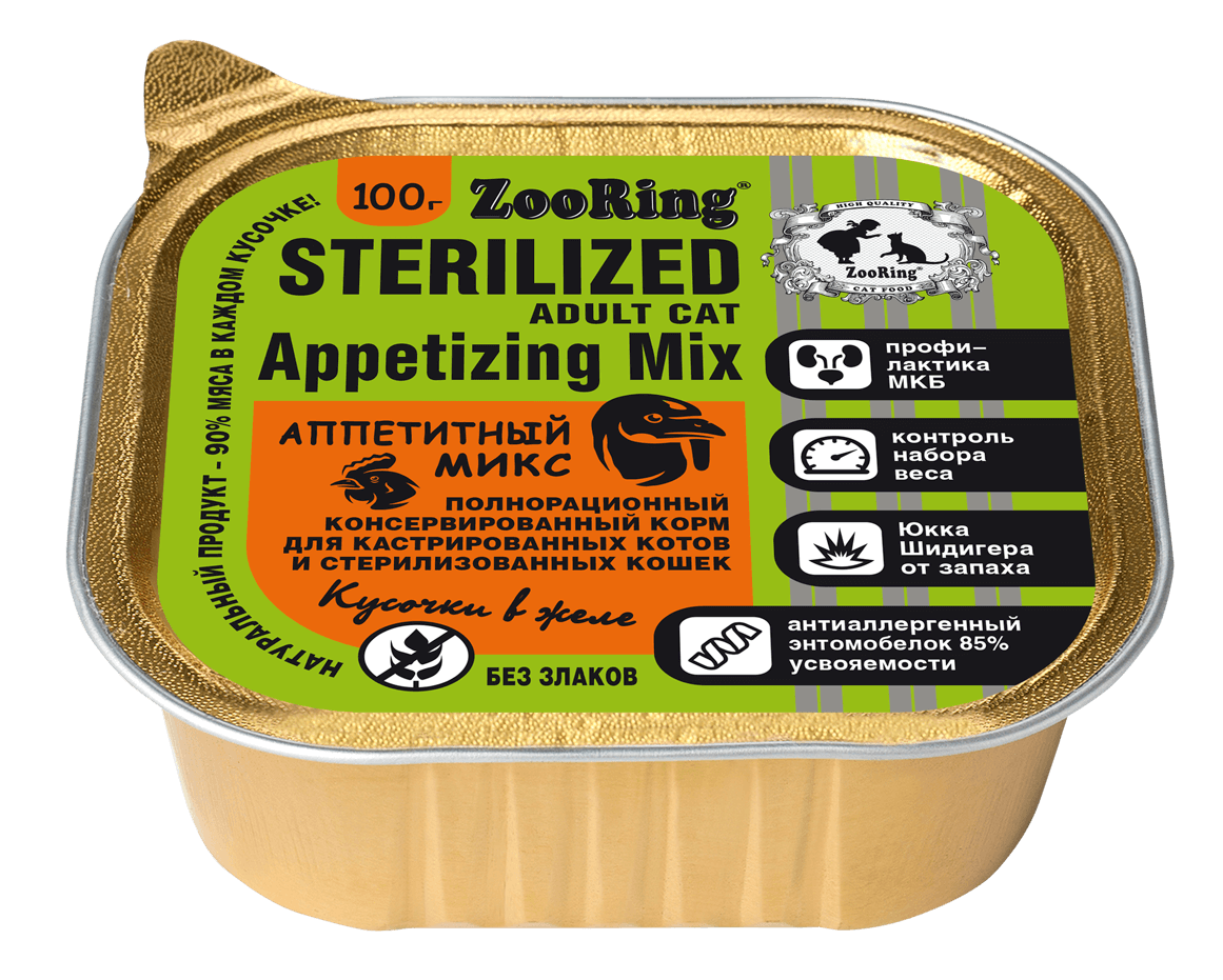 мясо и мясные субпродукты - 81% (в том числе: индейка - 25%, говядина - 11%), куриный бульон, белковый концентрат из Черной львинки, гороховая мука, пивные дрожжи, витамины и минералы, DL-метионин, таурин, экстракт Юкки Шидигера.