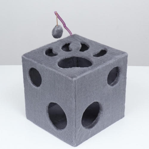 Домик для кошек «Кубик с лапкой», с игрушкой, 40×40×40 см
