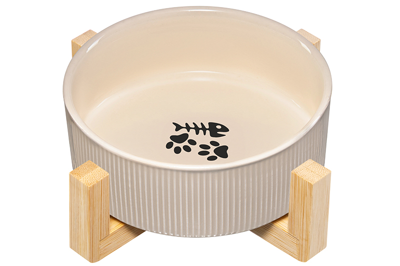 Миска для домашних животных на бамбуковой подставке от Elan Gallery подойдёт для котов, собак мелких пород и других питомцев. Размер комплекта с подставкой – 12,5х12,5х6 см. Размер ёмкости без подставки – 12х12х5 см, объём – 300 мл. Выполнена из керамики, безопасной для здоровья и не выделяющей вредных веществ. В отличие от металлической посуды, керамические изделия не впитывают запах, что особенно важно для животных из-за хорошего обоняния. Они гипоаллергенны и легко отмываются, что делает их удобными в повседневном использовании. Бежевая мисочка имеет рельефную поверхность. На дне расположен рисунок в виде кошачьих лапок и рыбки. Глубокое декоративное изделие подойдёт для сухого и влажного корма, а также для воды в качестве поилки. Бамбуковая подставка обеспечит устойчивость и предотвратит повреждение изделия. Расположите блюдце на кухне или в любом другом подходящем месте в доме. Не рекомендуется применять абразивные моющие средства. Без бамбуковой подставки подходит для использования в посудомоечной машине и микроволновой печи. Бамбук нельзя замачивать! Поставляется в дизайнерской картонной коробке – благодаря ей вам не потребуется дополнительная подарочная упаковка. В коллекции бренда Элан Галерея вы найдёте эстетичные и практичные зоотовары – кошачьи и собачьи миски, а также удобные лежанки. Такие аксессуары прекрасно дополнят ваш домашний инвентарь и помогут окружить вашего любимца заботой и уютом!