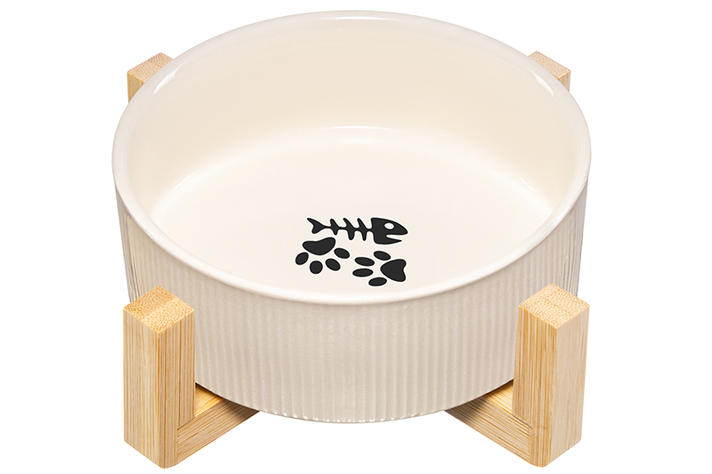БЫЛО 526 руб! Миска для домашних питомцев 300 мл 12,5*12,5*6 см, с бамбуковой подставкой, молочная