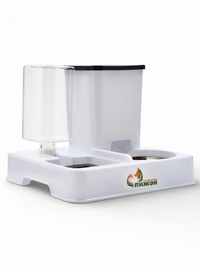 Комплекс автокормушка и автопоилка, 800 мл, с металлической миской, белый