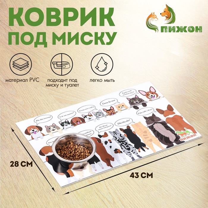 Коврик под миску "Пижон" 43 х 28 см "Пушистики в ожидании"