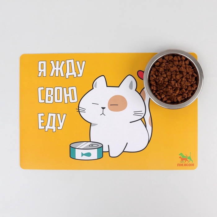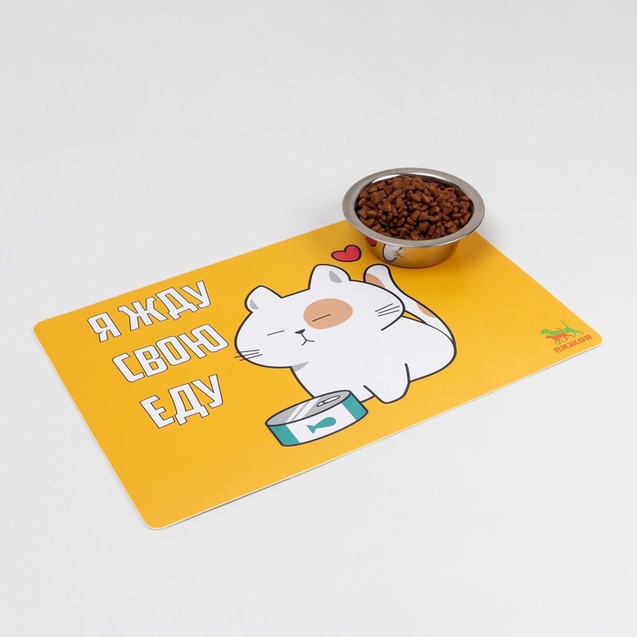 Коврик под миску Пижон «Я жду свою еду» с нескользящим основанием 43×28 см