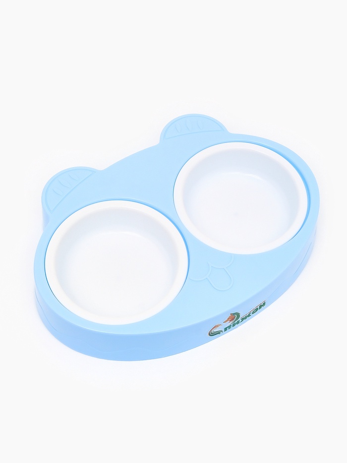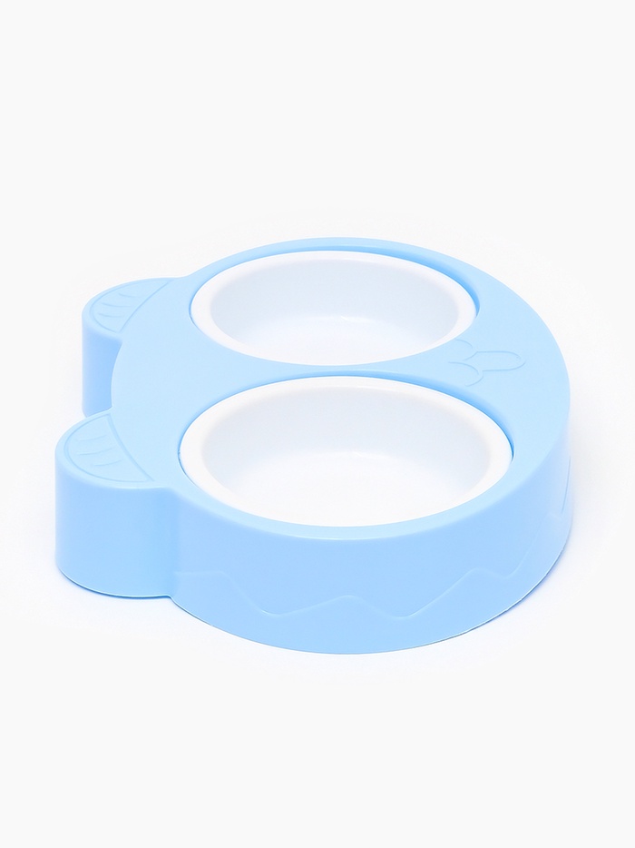 Миска двойная «Киса», 2×160 мл, пластик, голубая