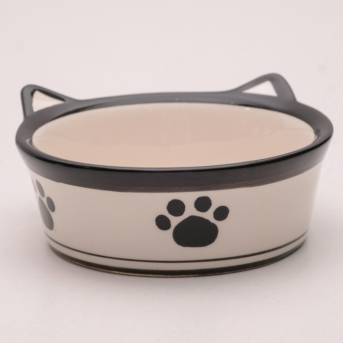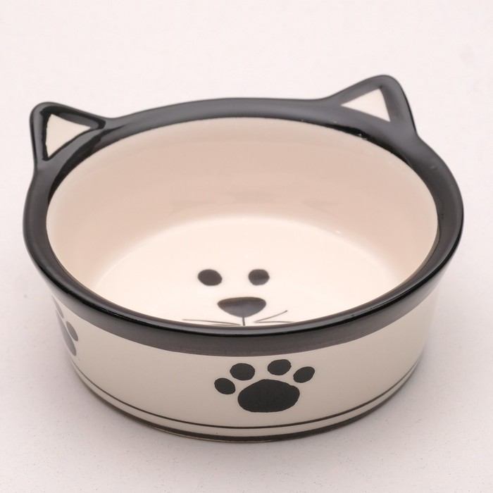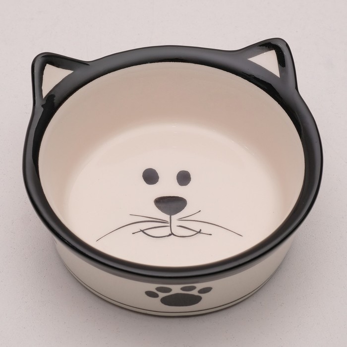 Миска для кошек Пижон «Подмигивающий кот», 200 мл, 11×4.8 см, керамика, белая, чёрная