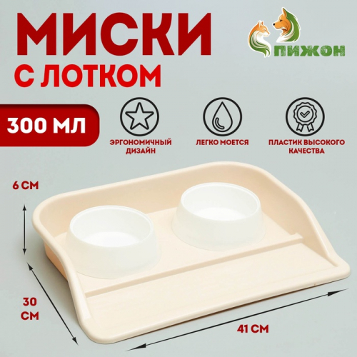 Миски с лотком «Феликс» 0.3 л, 41×30×6 см, бежевый лоток, белые миски