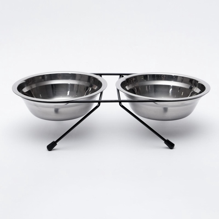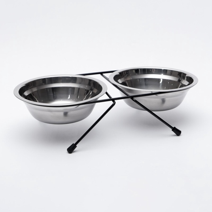 Набор из 2 мисок на подставке, 2×500 мл, чёрная подставка