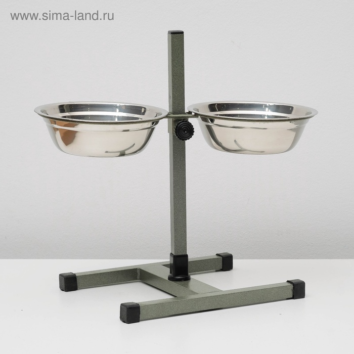 Подставка с мисками, 2 х 1 л, высота 40 см, разборная, зелёная