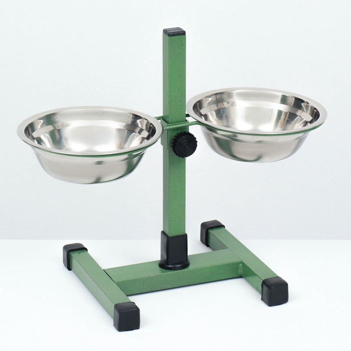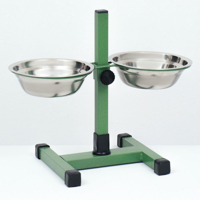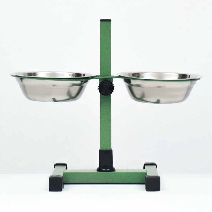 Подставка с мисками, 2 х 500 мл, высота 30 см, разборная, зелёная