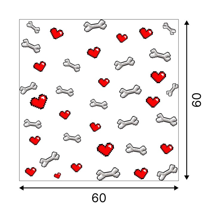 Защитная самоклеящаяся пленка на месте кормления/туалета питомца "Сердечки и кости" 60х60 см