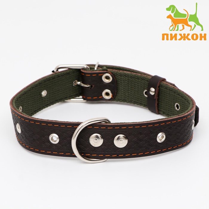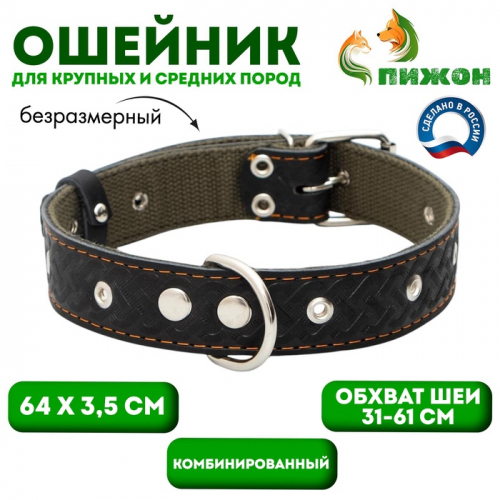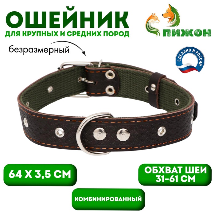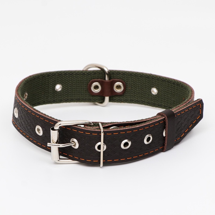 Ошейник комбинированный безразмерный, кожа/брезент, 65×3.5 см, ОШ 31-61 см, коричневый