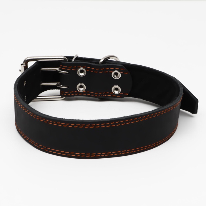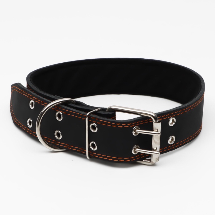 Ошейник кожаный на синтепоне, 82×4.5 см, ОШ 50-70 см, чёрный