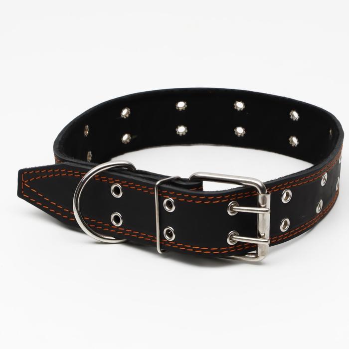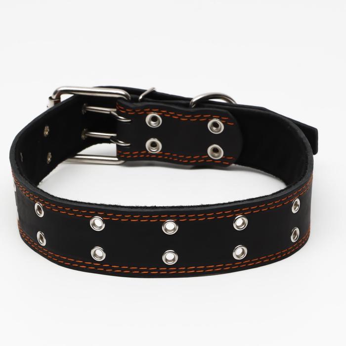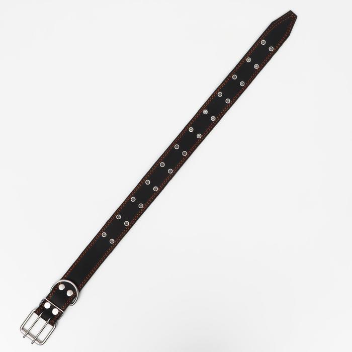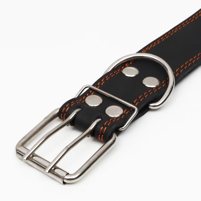 Ошейник кожаный на синтепоне, безразмерный, 83×4.5 см, ОШ 20-71 см, чёрный