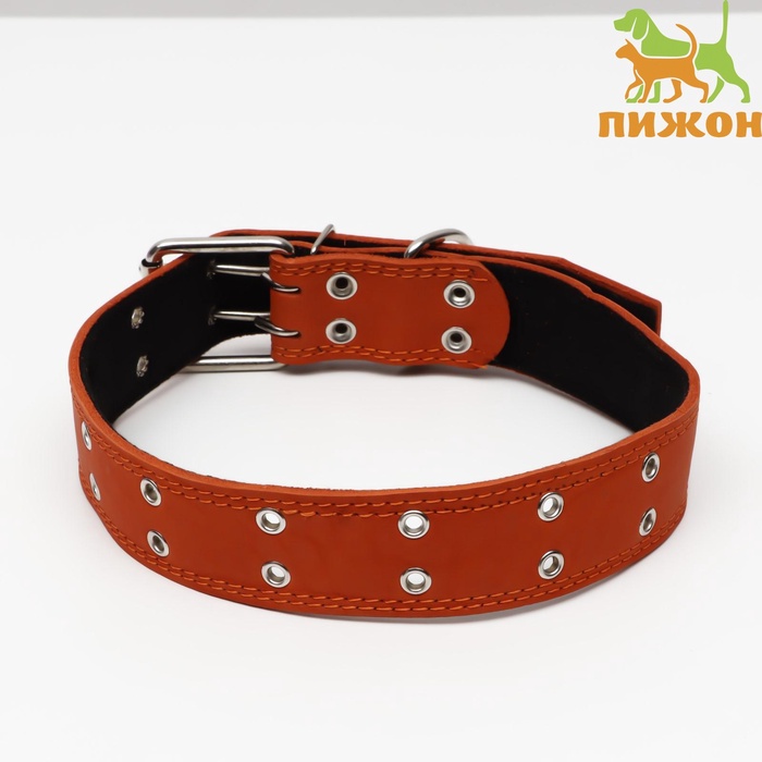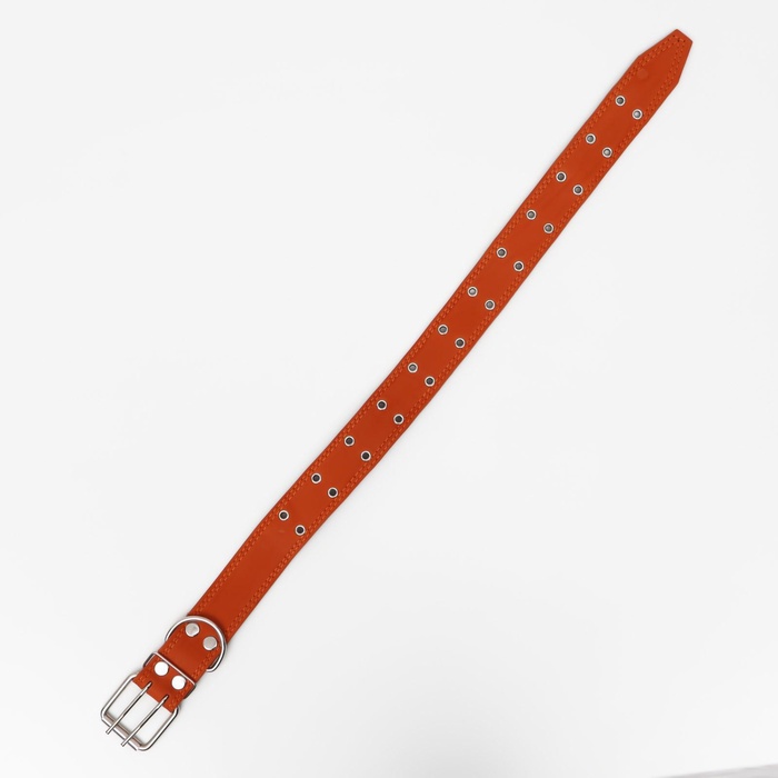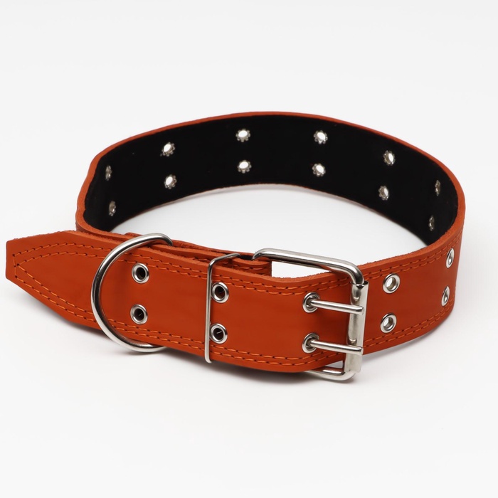 Ошейник кожаный на синтепоне, безразмерный, 83×4.5 см, ОШ 20-71 см, оранжевый