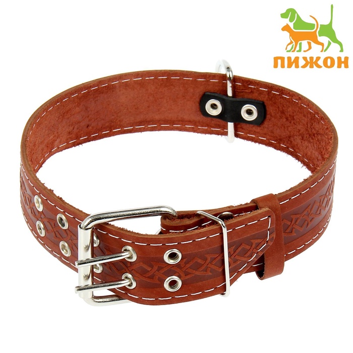 Ошейник кожаный однослойный, 73×4.5 см, ОШ 51-65 см, микс