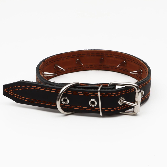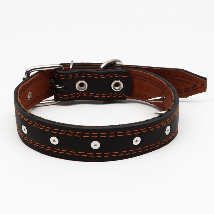 Ошейник кожаный «Строгий шип», 65×3 см, ОШ 40-55 см, чёрный
