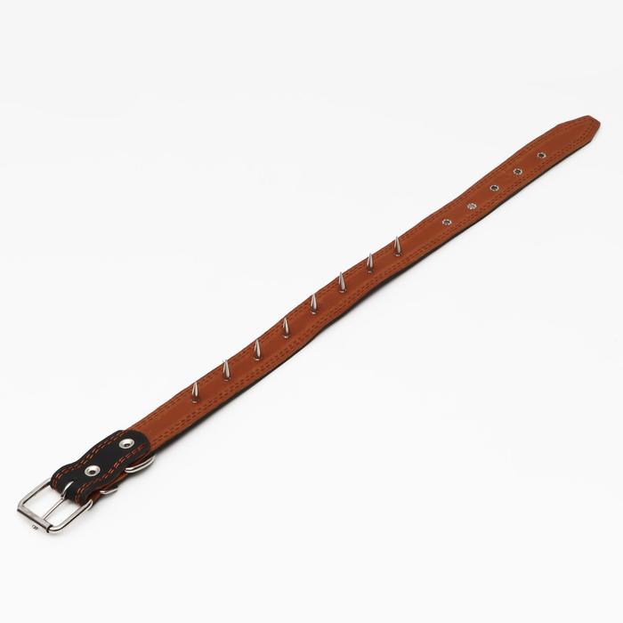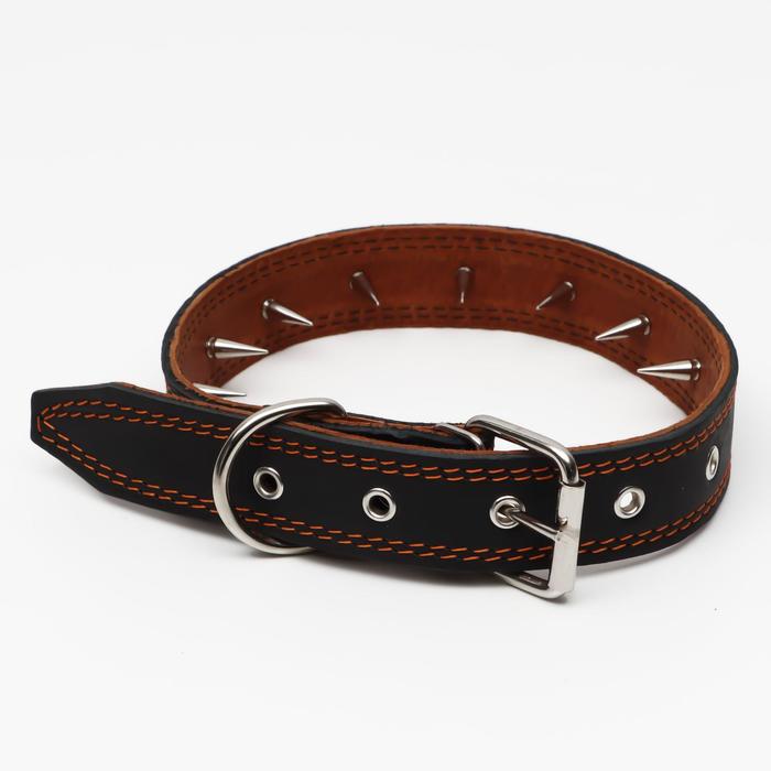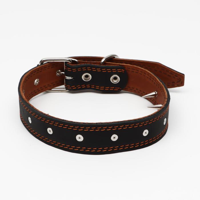 Ошейник кожаный «Строгий шип», 70×3.5 см, ОШ 45-60 см, чёрный